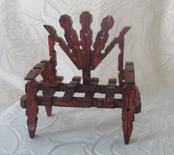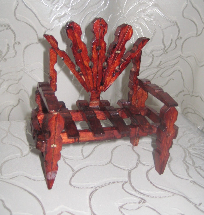 Муж мой сделал карказ,но чуть не подрасчитал,маловато креслице гостю...порылась я в нете и нашла то,что мне надо стул из прищепок!!!!Красота неимоверная,спасибо всем огромное!!Всё-таки поражаюсь умению,таланту и смикалке людей!!!В общем получилась у нас стул-скамейка