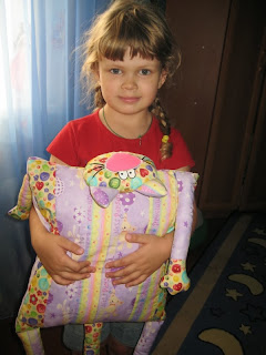 Леночка организавала "Сюрпризный обмен" и для неё у меня сшилась вот такая подушечка-котик