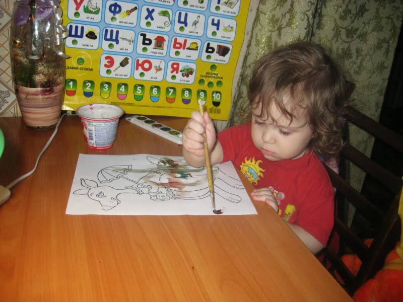 Ребенок устал,мы даже чай успели попить,потом доделывали=)))Пока картинка сохнет можно же и разукрасить другую картинку