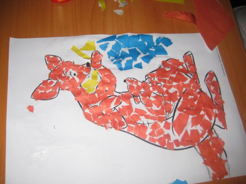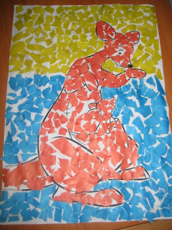В садик сегодня не пошли.Решили мы продолжить тему "Кенгуру".А для этого нам понадобилось распечатеть картинку с кенгуру,цветная бумага,клей(в нашем случае ПВА),кисточка и....самое главное РЕБЕНОК!!!!=)))Которому жутко скучно!(На улице жуткий холод,она кашляет и мама не отпускает гулять)-ребёнку СКУЧНО!!